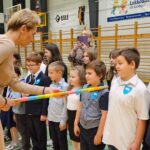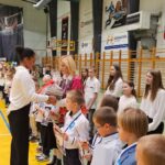 11 października br. w hali Promienia, w podniosłej atmosferze, odbyła się uroczystość pasowania na ucznia naszej szkoły. Podczas apelu dzieci z klasy Ia i Ib zaprezentowały programy artystyczne – śpiewały, recytowały i tańczyły. Po odebraniu przyrzeczenia przez Panią Dyrektor Małgorzatę Stodulską żak pasował dzieci na uczniów Szkoły Podstawowej nr 5 im. Polskich Noblistów w Żarach, a starsi koledzy wręczyli im pamiątkowe tarcze.