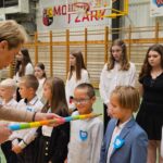 7 października 2025r. w naszej szkole odbyło się Pasowanie na Ucznia Szkoły Podstawowej nr 5 w Żarach. Podczas apelu dzieci z klasy 1A (wych. p. Marzena Polit) i 1B (wych. p. Sylwia Lidwin) zaprezentowały program artystyczny — śpiewały, recytowały i tańczyły. Aktu pasowania dokonała Pani Burmistrz Edyta Gajda. Od tego dnia nasze pierwszaki oficjalnie stały się uczniami społeczności szkolnej. Na zakończenie każdy pierwszak otrzymał medal oraz niespodzianki przygotowane przez uczniów z klas trzecich i rodziców. To był dzień pełen emocji, radości i uśmiechu.