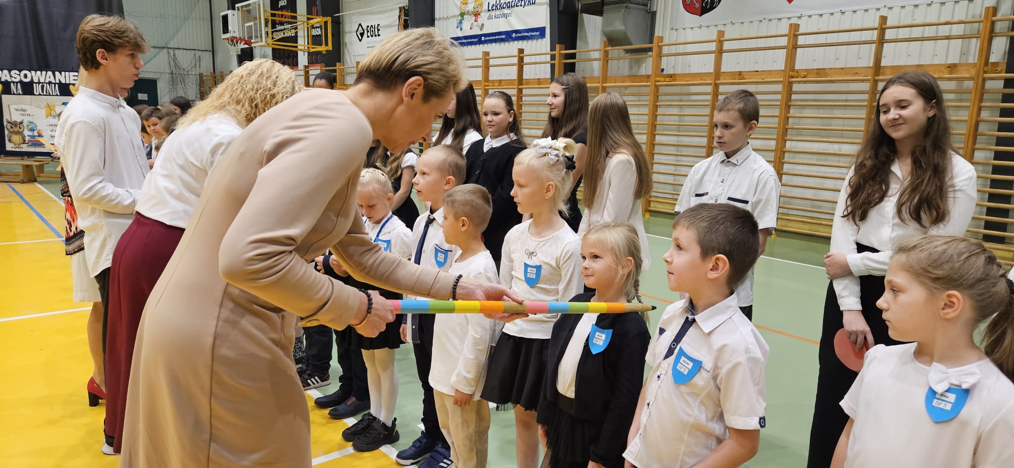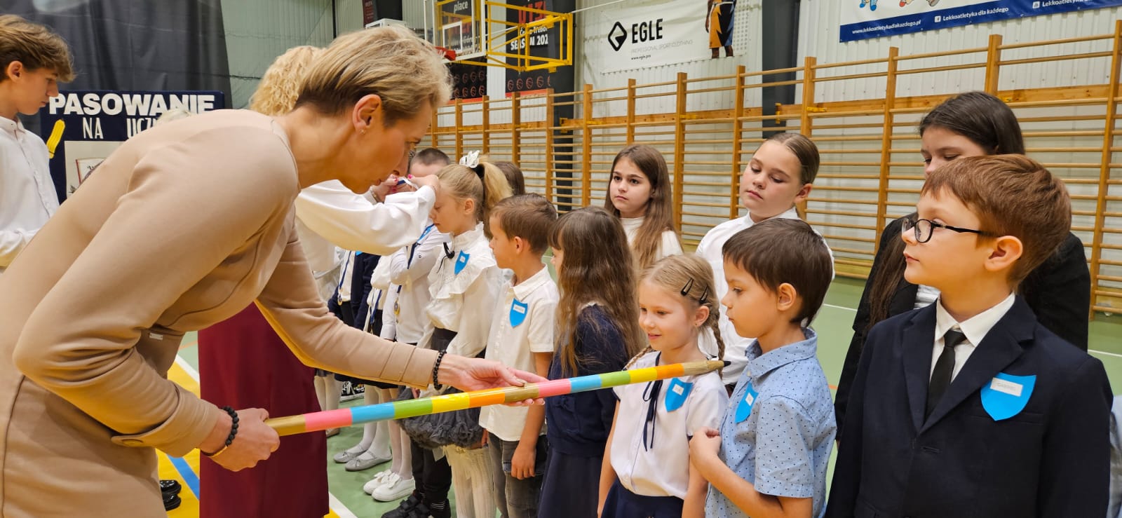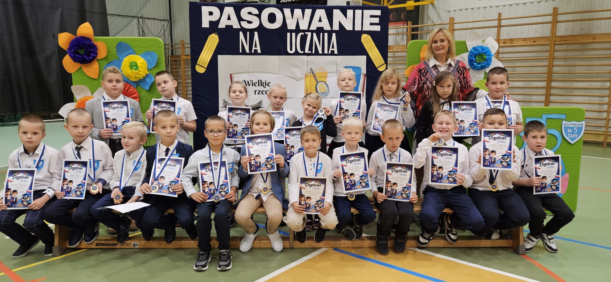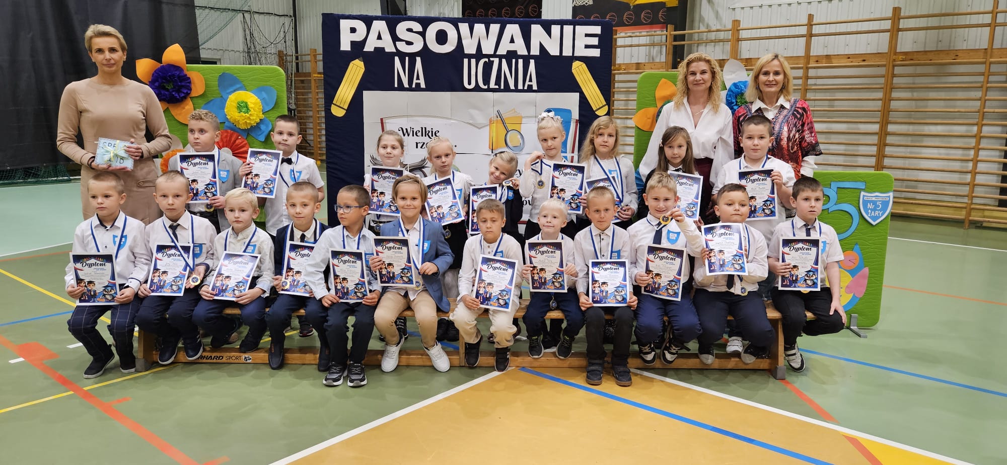 7 października 2025r. w naszej szkole odbyło się Pasowanie na Ucznia Szkoły Podstawowej nr 5 w Żarach. Podczas apelu dzieci z klasy 1A (wych. p. Marzena Polit) i 1B (wych. p. Sylwia Lidwin) zaprezentowały program artystyczny — śpiewały, recytowały i tańczyły. Aktu pasowania dokonała Pani Burmistrz Edyta Gajda. Od tego dnia nasze pierwszaki oficjalnie stały się uczniami społeczności szkolnej. Na zakończenie każdy pierwszak otrzymał medal oraz niespodzianki przygotowane przez uczniów z klas trzecich i rodziców. To był dzień pełen emocji, radości i uśmiechu.