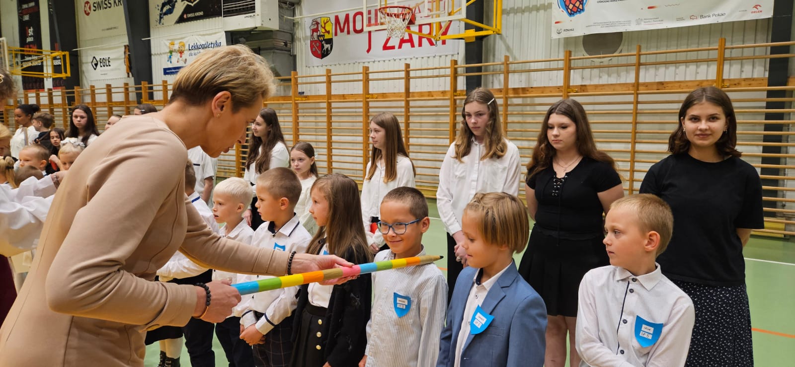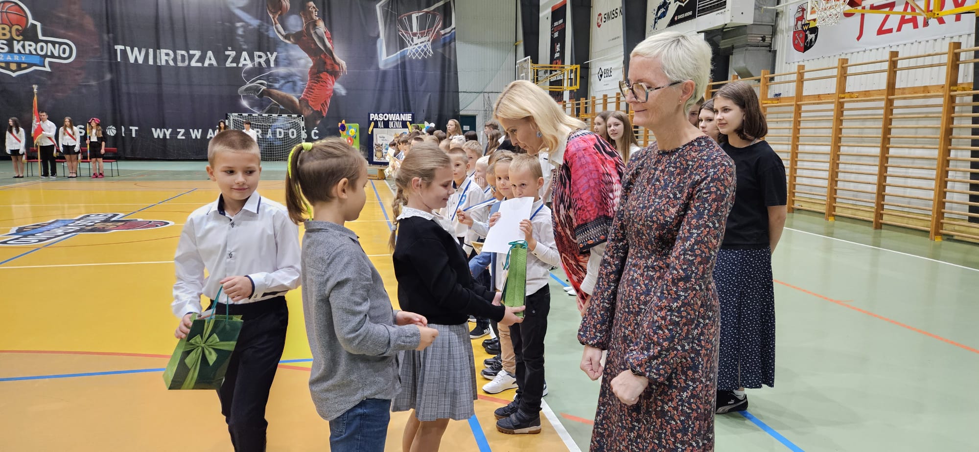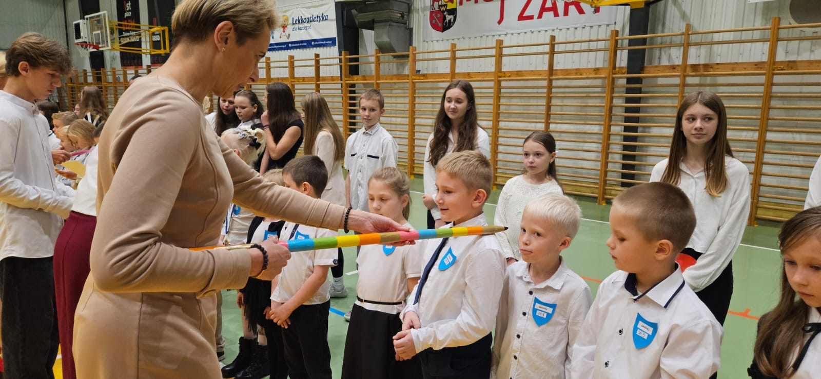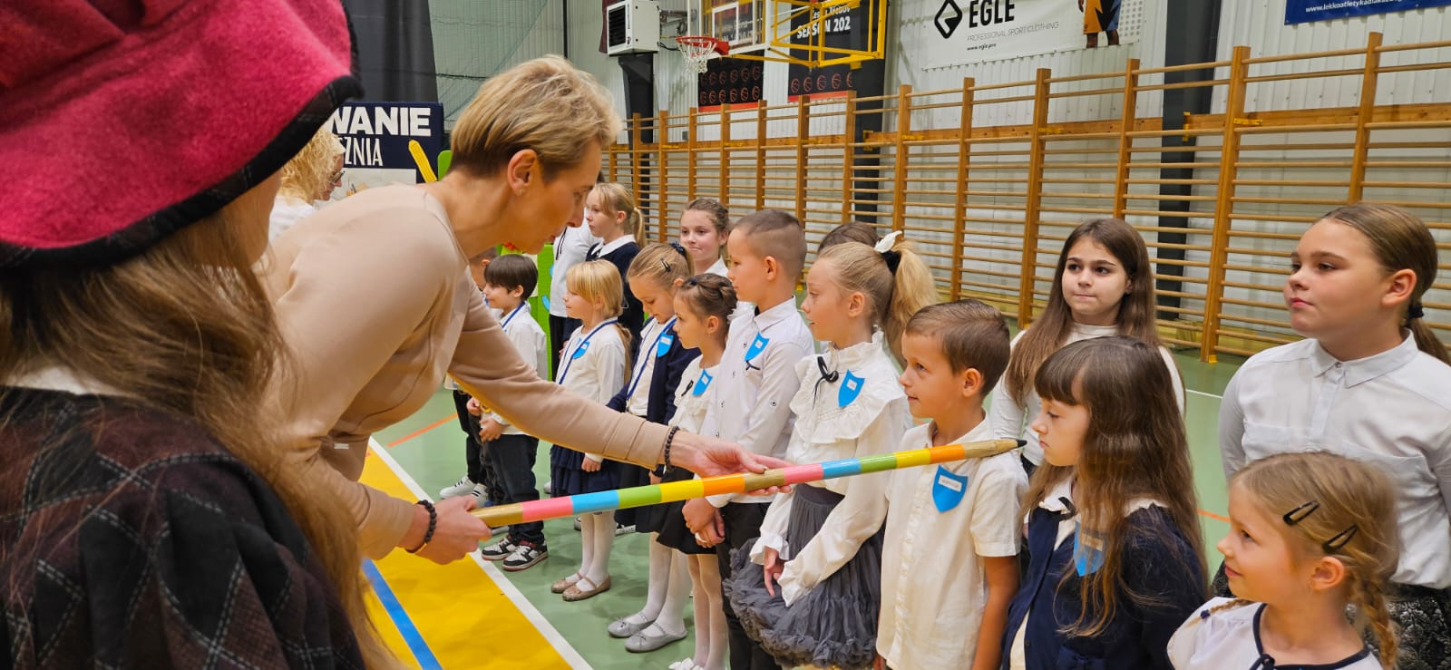 7 października 2025r. w naszej szkole odbyło się Pasowanie na Ucznia Szkoły Podstawowej nr 5 w Żarach. Podczas apelu dzieci z klasy 1A (wych. p. Marzena Polit) i 1B (wych. p. Sylwia Lidwin) zaprezentowały program artystyczny — śpiewały, recytowały i tańczyły. Aktu pasowania dokonała Pani Burmistrz Edyta Gajda. Od tego dnia nasze pierwszaki oficjalnie stały się uczniami społeczności szkolnej. Na zakończenie każdy pierwszak otrzymał medal oraz niespodzianki przygotowane przez uczniów z klas trzecich i rodziców. To był dzień pełen emocji, radości i uśmiechu.
