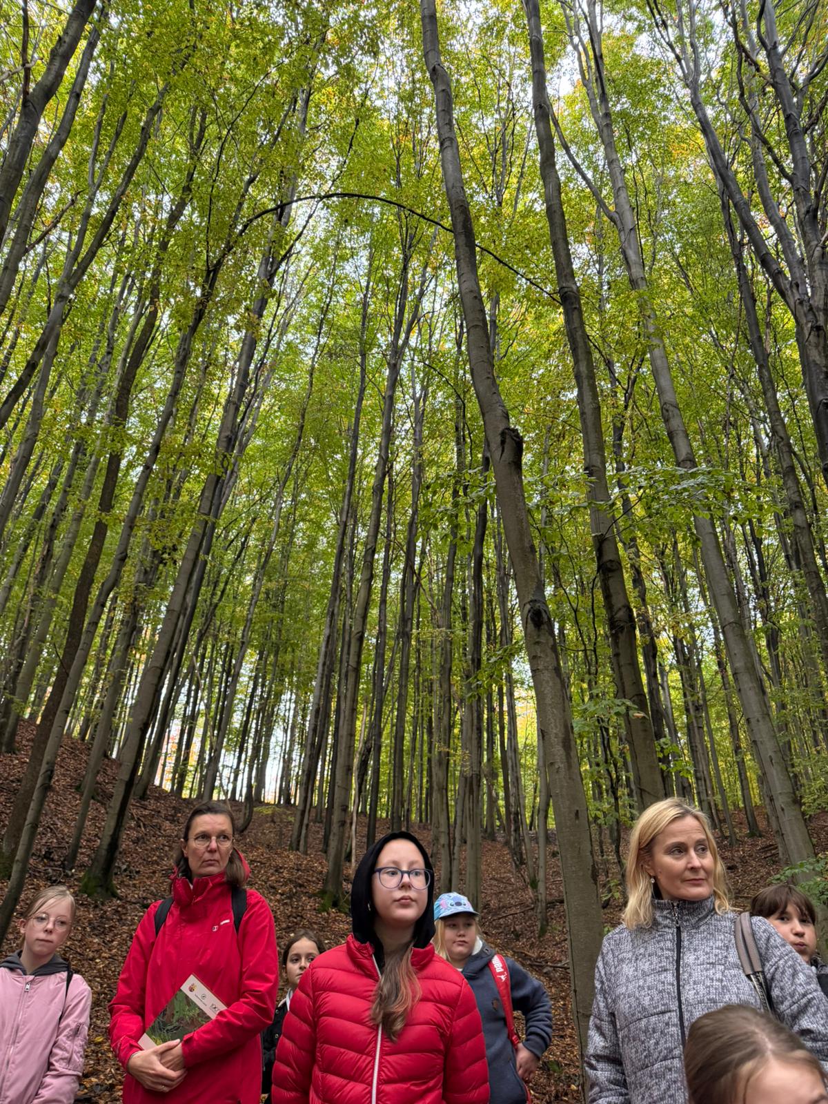 Jednym z najciekawszych punktów programu była wycieczka do Zielonego Lasu. Wspólnie z przewodnikiem-leśniczym odkrywaliśmy bogactwo przyrody – jesienne kolory drzew, odgłosy lasu i różnorodne gatunki roślin. Spacer wśród złocistych liści sprzyjał rozmowom i integracji uczestników, a także pozwolił na chwilę wytchnienia i relaksu.